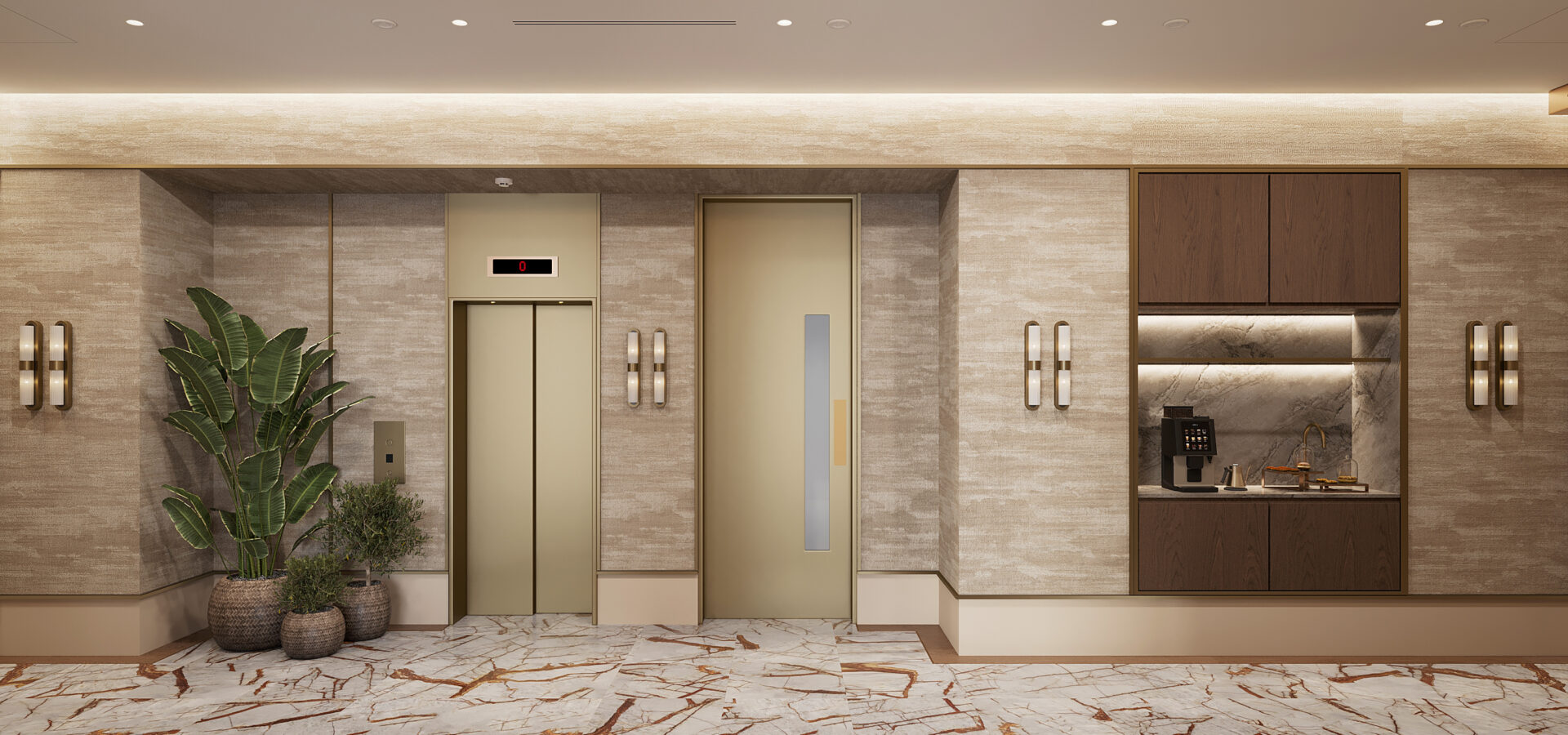 FIG was commissioned to transformation across all high-end apartments as well as the front-of-house (FOH) spaces, elevating both private and communal environments with thoughtful, refined design. The FOH scope includes the entrance lobby, reception, circulation areas, a shared office for resident use, a hospitality room, and a fully equipped gym.