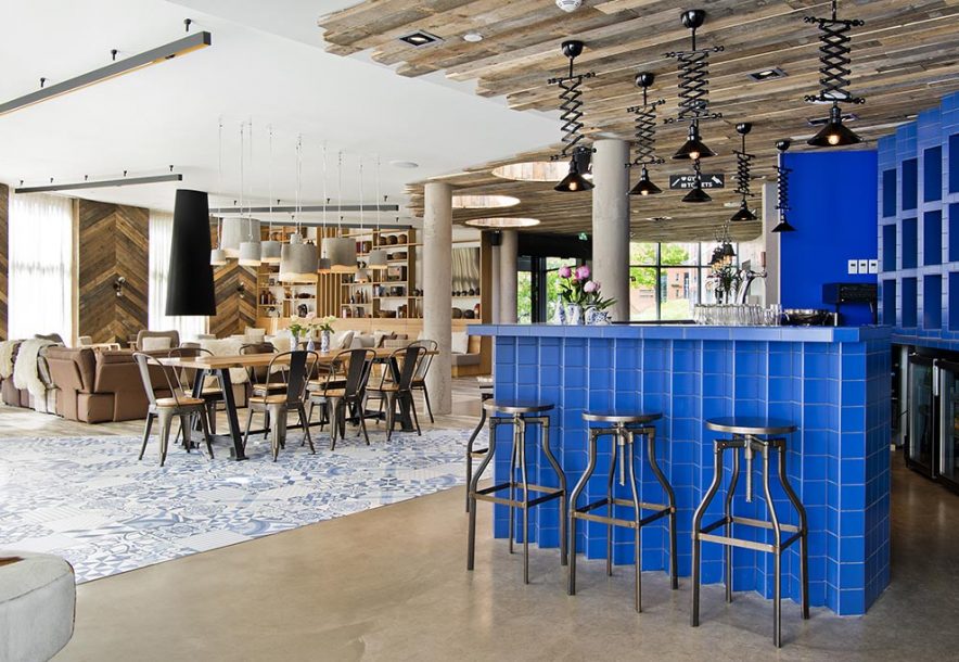 Situated in Sloterdijk, just outside the airport this homely hotel has a lodge feel because the area was originally farmland. When we researched the location we also discovered that the original train station at this location was the first one in the Netherlands, which then gave us an interesting juxtaposition in concepts – the ‘urban’ with the ‘lodge’.